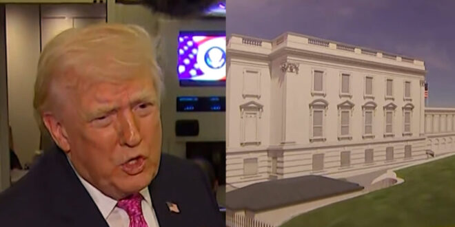 يقول الرئيس الأمريكي، دونالد ترامب، إن قاعة احتفالات جديدة في البيت الأبيض ستُقام فوق مجمع تحت الأرض بناه الجيش الأمريكي. وأثناء حديثه على متن طائرة الرئاسة، أشار ترامب إلى أن المشروع ممول من القطاع الخاص ويسير بوتيرة أسرع من المخطط لها.