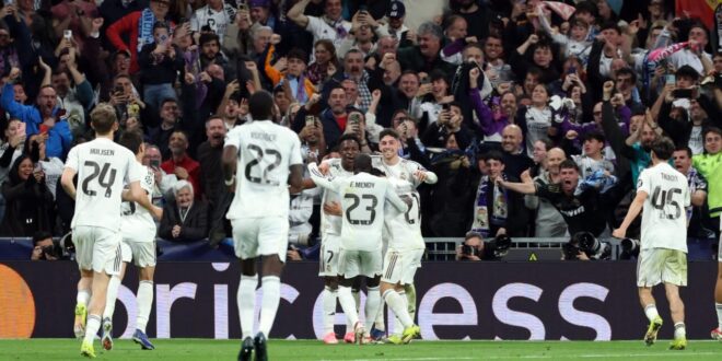 — فاز نادي ريال مدريد الإسباني على منافسه مانشستر سيتي الإنجليزي بثلاثة أهداف دون رد، في ملعب "سانتياغو برنابيو"، الأربعاء، بذهاب ثمن نهائي دوري أبطال أوروبا (تشامبيونزليغ).