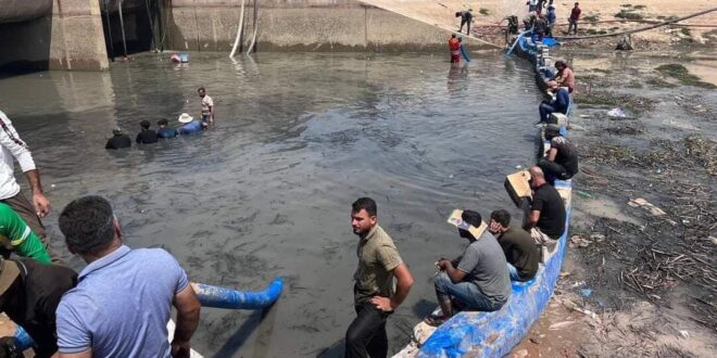 أثناء السباحة في نهر مهروت المبطن بناحية الوجيهية شمال شرقي محافظة ديالى.