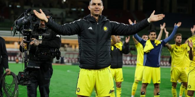 — ظهر لاعب كرة القدم البرتغالي كريستيانو رونالدو مرتديًا البشت السعودي التقليدي، في نهاية مباراة نادي النصر والحزم، كجزء من احتفالات يوم التأسيس في المملكة العربية السعودية، بمشهد أثار تفاعلًا واسعًا على مواقع التواصل الاجتماعي.