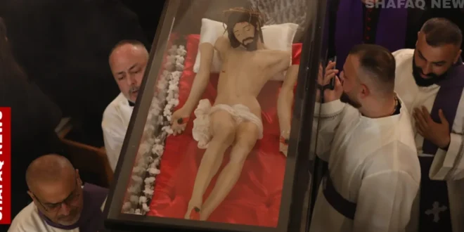 تجمع العشرات من المسيحيين من أهالي مدينة ألقوش في محافظة دهوك، مساء اليوم الجمعة، لإحياء "جمعة الآلام" في كنيسة مار كوركيس الكاثوليكية.