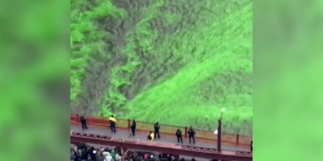نهر شيكاغو الأمريكي يكتسي باللون الأخضر.. شاهد السبب