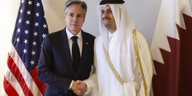التقى وزير الخارجية الأمريكي، أنتوني بلينكن مع رئيس الوزراء وزير الخارجية القطري، محمد بن عبدالرحمن آل ثاني لمناقشة الجهود المبذولة لضمان إطلاق سراح الرهائن المتبقين الذين تحتجزهم حماس.