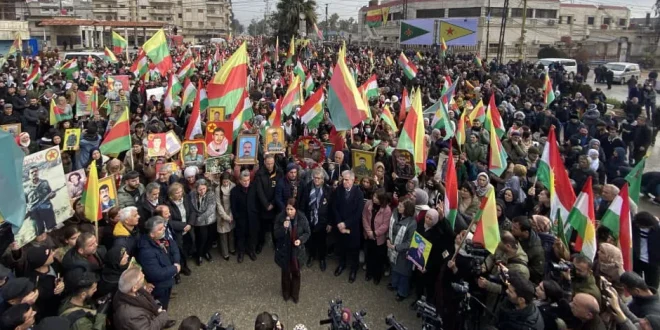 شارك آلاف الكورد في مسيرة جماهيرية بمدينة القامشلي، اليوم الأحد، دعماً لوحدة الصف الكوردي في سوريا ورفضاً للهجمات على المناطق الكوردية في سوريا.